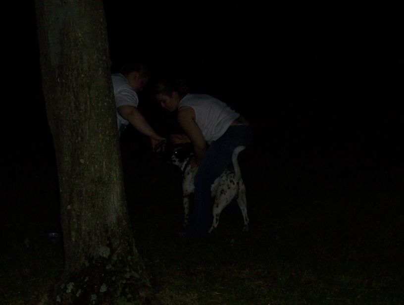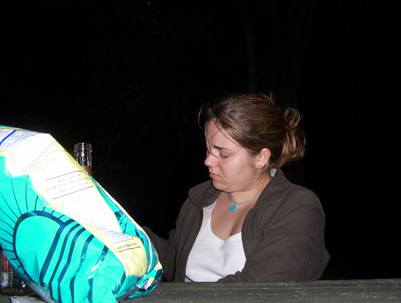 Nichole. I don't know what she's doing. Either petting the dog, getting food or something. Your guess is as good as mine. |