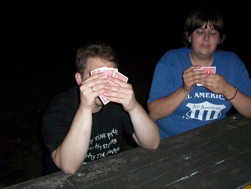 Cards, Sarah and JM is the guy hiding. I don't remember if I got him in a picture or not, without him flipping the bird to the camera at least. LOL |